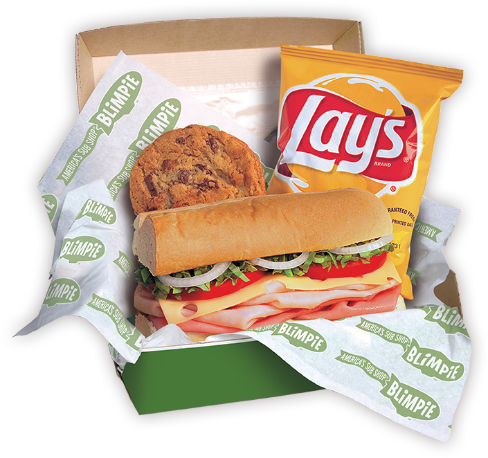 Packed with a regular sub, bag of chips, beverage and a cookie. Choose something everyone can agree on... Blimpie. Minimum order of five.