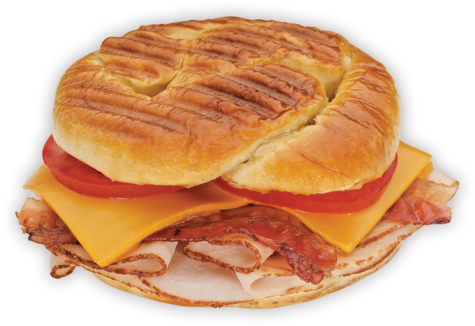 Turkey, bacon, cheddar, tomatoes & spicy mustard